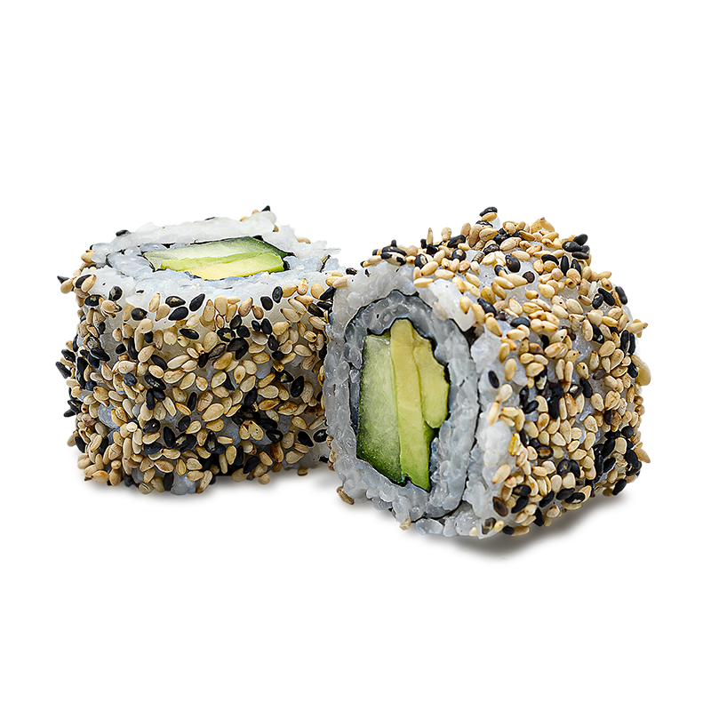 Rouleaux d'algues garnis de concombre et d'avocat, entourés de riz et de graines de sésame. Des California "verts" pour une pause dej' saine