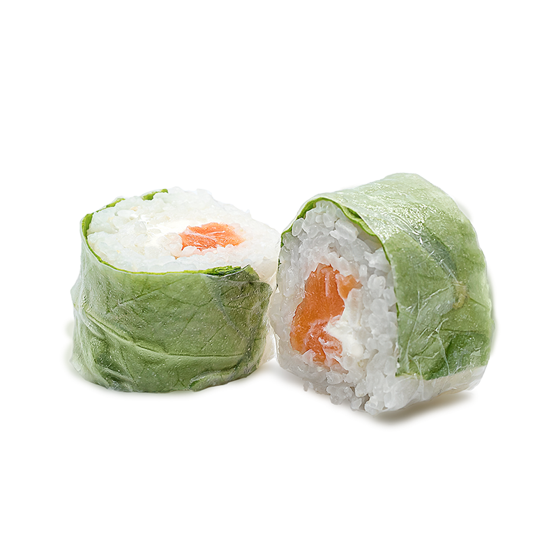 Rouleaux de riz garnis de saumon et fromage frais, enroulés dans une feuille de riz et de salade.Une association de goûts indémodable !